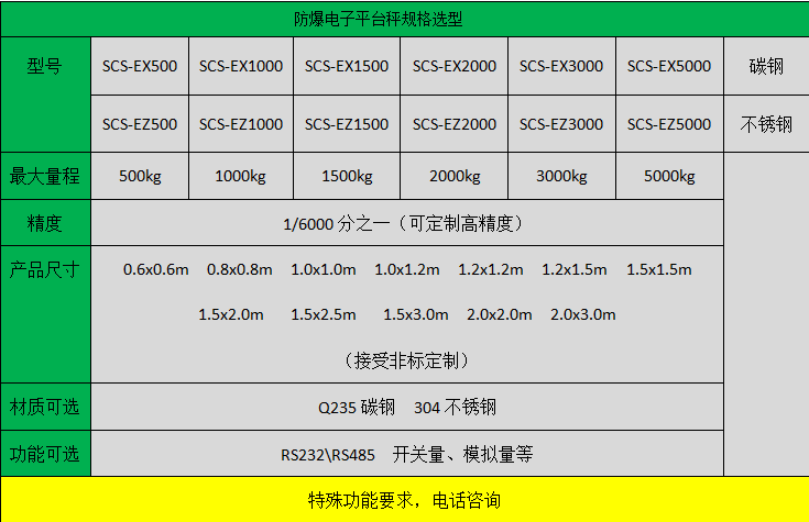 防爆電子平臺秤專為具有爆炸和爆燃危險的產品生產場所開發研制的微電腦控制電子精密稱量設備,可在兵器行業,醫藥和化工品制造裝配、彈體裝藥、裝配檢測稱量,航空航天彈箭飛行器具研制以及民用爆破器材生產中得到廣泛應用。